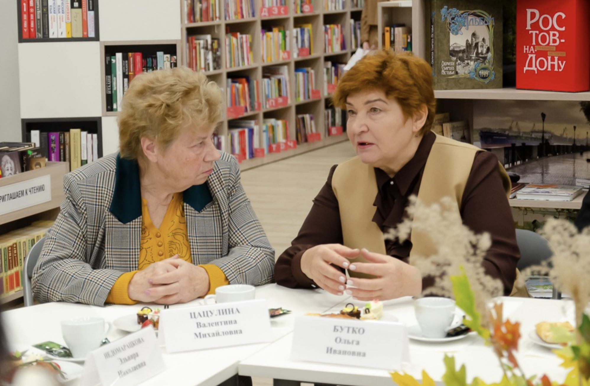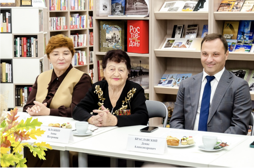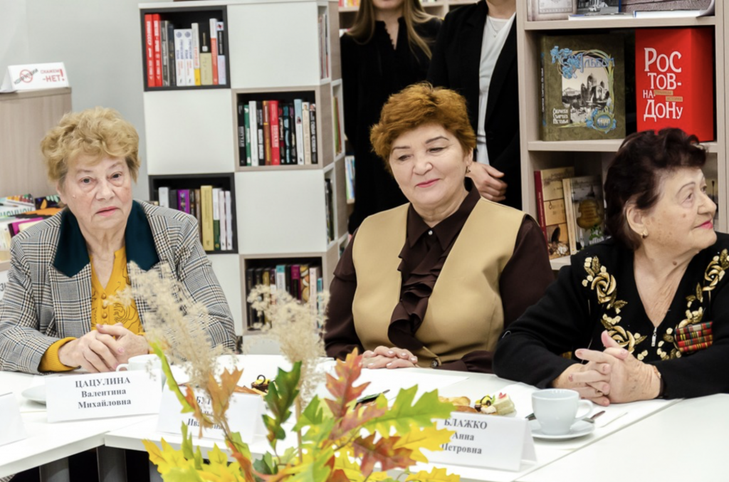 03.10.2025 в читальном зале Центральной городской библиотеки имени М. Горького состоялось заседание круглого стола, приуроченное ко Дню пожилого человека с участием Директора Департамента социальной защиты населения города Ростова-на-Дону Виктории Валерьевны Добрицкой и заместителя главы Администрации города Ростова-на-Дону Виктории Анатольевны Чернышовой.